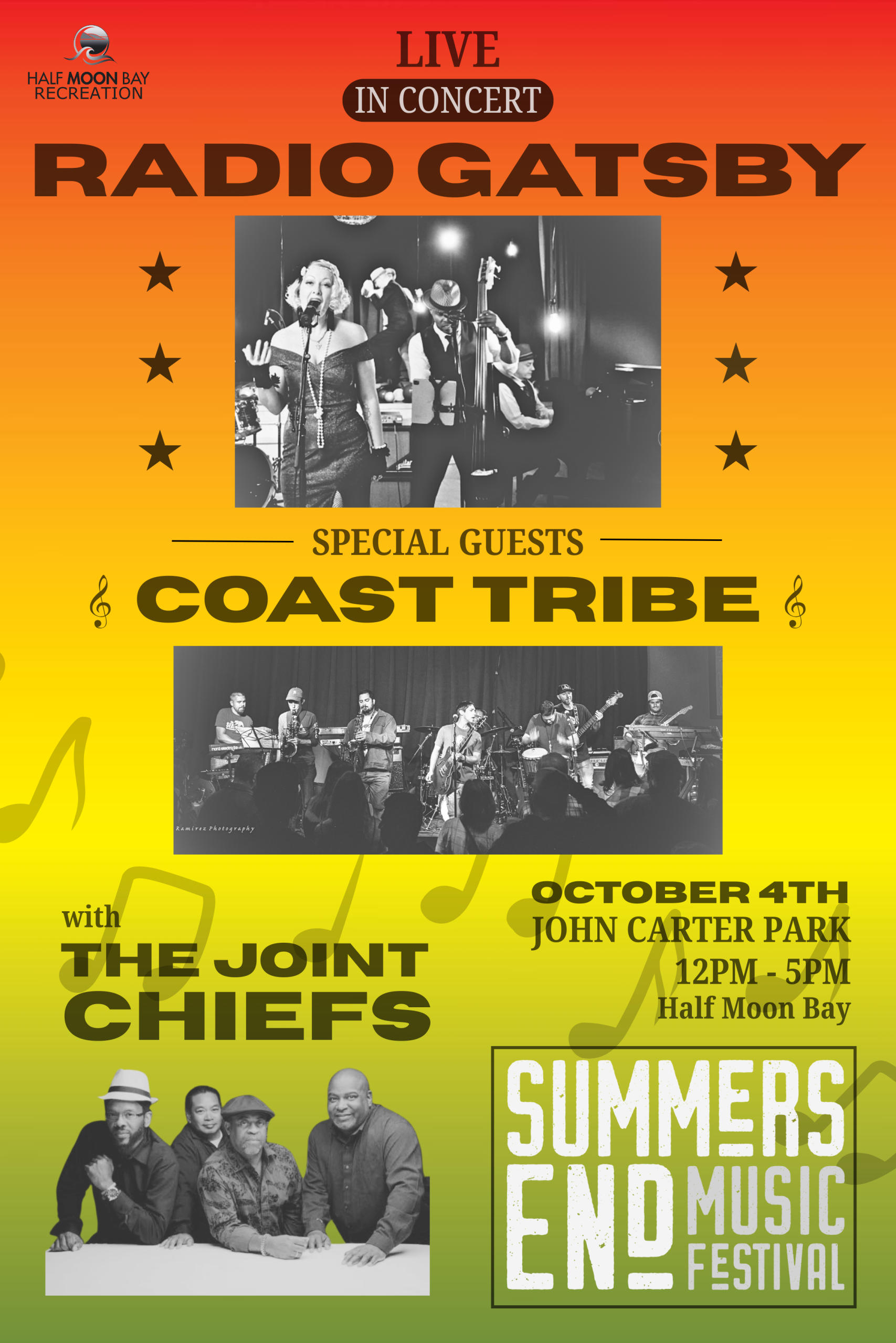 We’re saying goodbye to summer the best way we know how—with live music, dancing, and good vibes in the heart of Half Moon Bay. Coastside Country kicks things off with a line dancing exhibition at 11:30 AM, followed by live sets from The Joint Chiefs, Coast Tribe, and Radio Gatsby.
