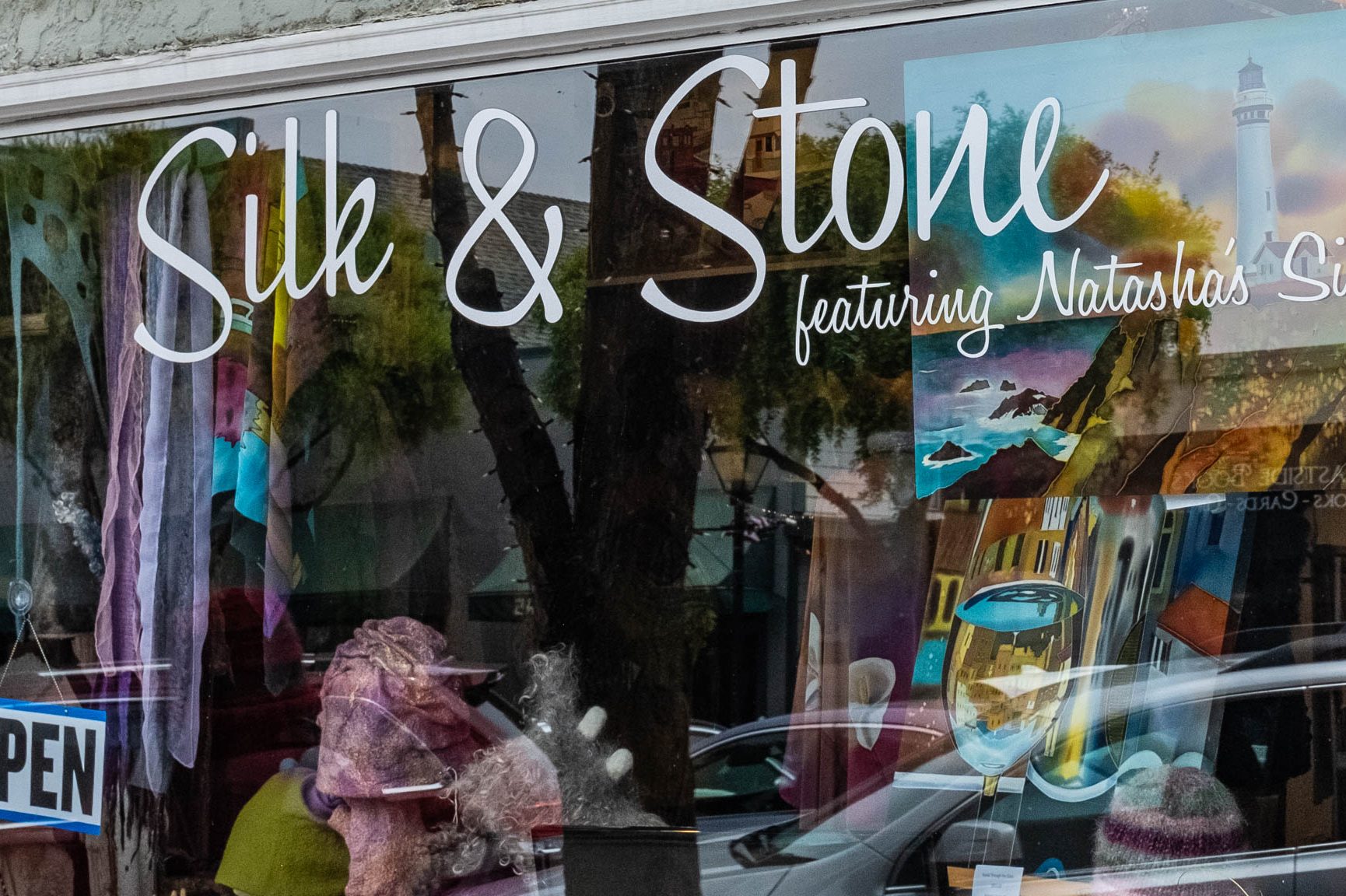 In addition to Natasha’s silk creations, Silk & Stone offers an eclectic array of handcrafted jewelry, including unique, locally made pieces. The shop also carries a variety of lacy felted wool-and-silk garments, cozy felted slippers, and whimsical hand-knitted accessories like hats and scarves. Each item is carefully crafted and reflects the shop’s commitment to showcasing local artistry and craftsmanship. Customers can also find note cards and prints featuring Natasha’s silk paintings, making it easy to find an affordable and special gift for any occasion.